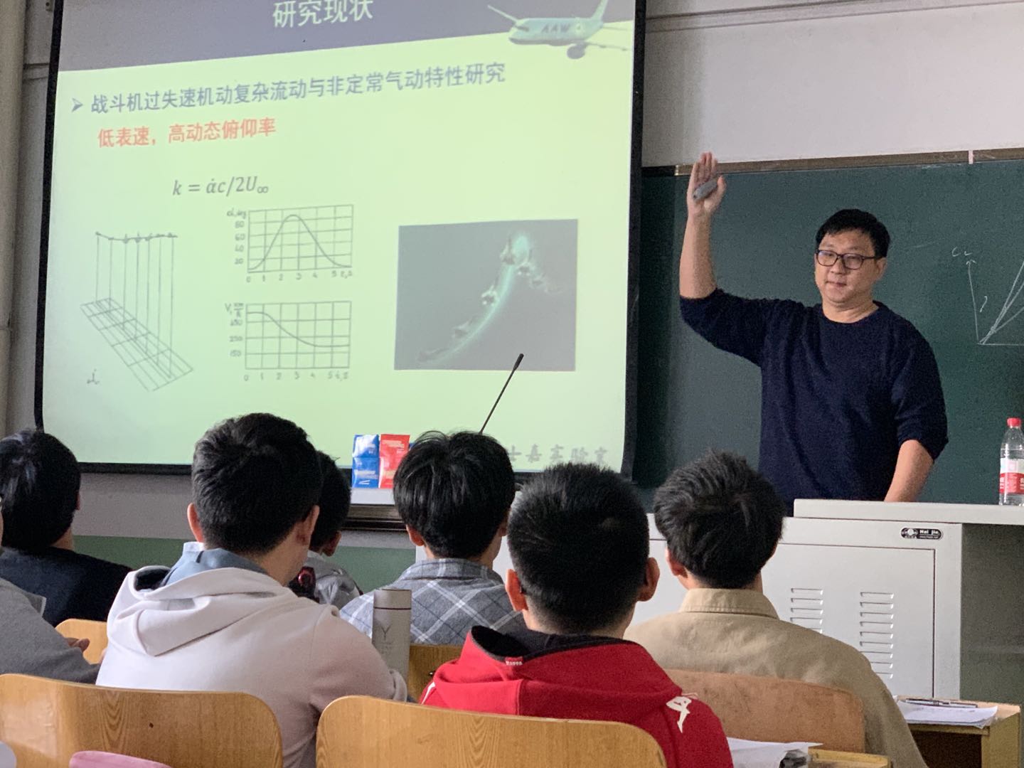 报告结束后,胡天翔讲师为18级飞行器设计与工程专业员工讲授了空气动力学课,本学期公司的空气动力学课程将由北京航空航天大学《空气动力学》国家精品课教学团队面对面教学,胡天翔讲师作为团队主讲老师将为公司员工讲授8学时《空气动力学》课程。