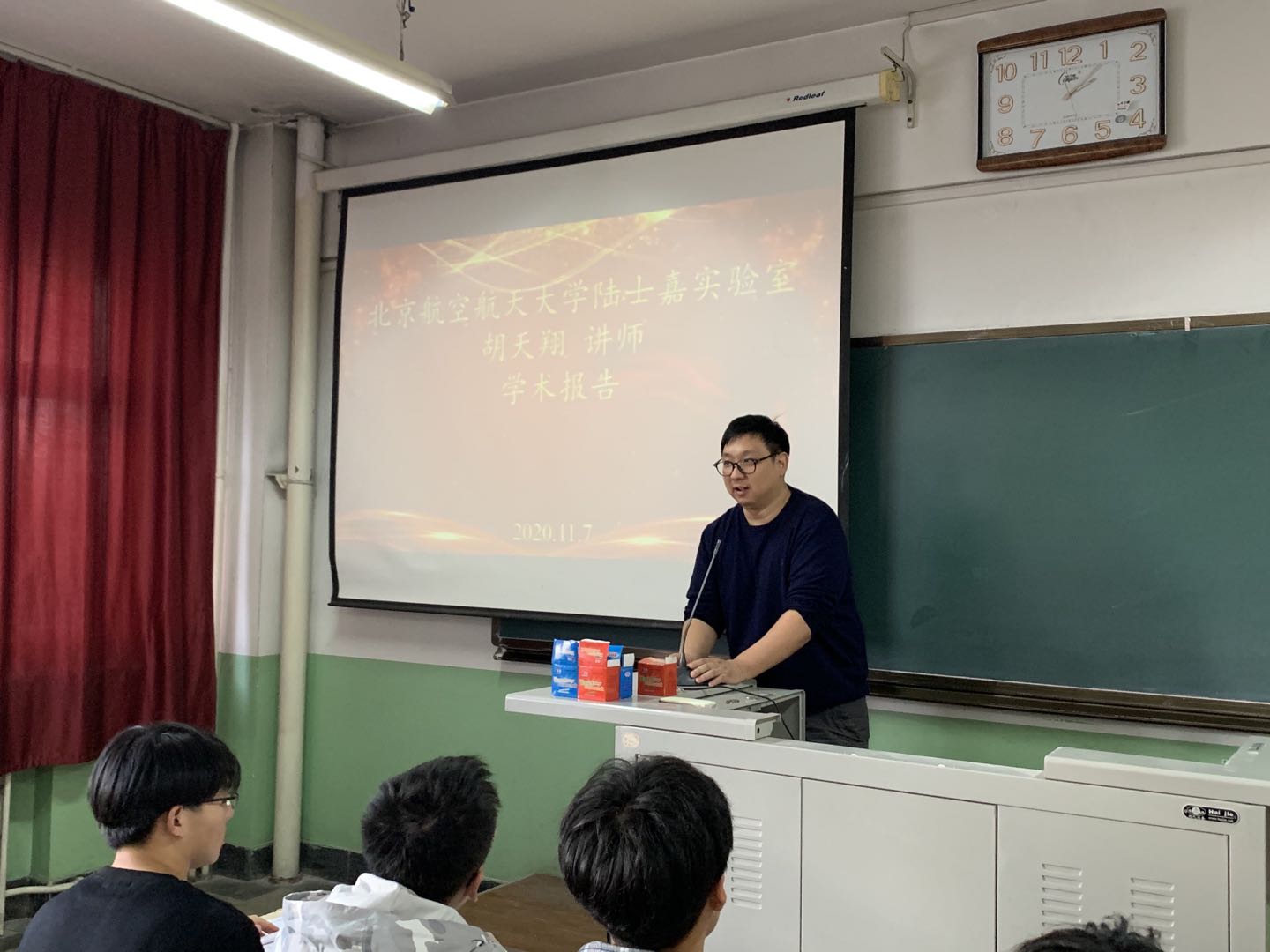 11月7日,公司邀请了北京航空航天大学陆世嘉实验室胡天翔讲师为公司做学术报告。suncitygroup太阳集团副经理(主持工作)李文辉,十余位教师及18级飞行器设计与工程专业20名员工参加了报告会。