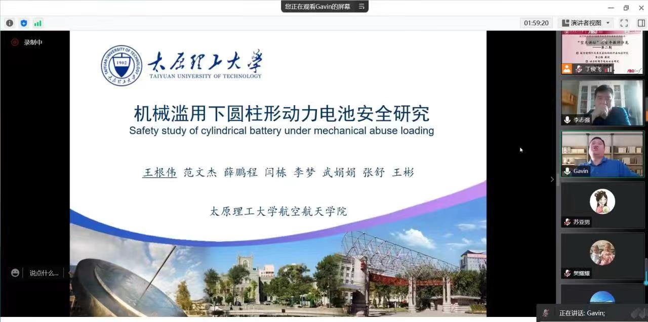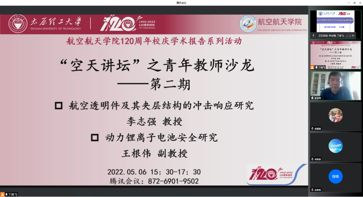 本期沙龙,由公司两位优秀青年教师李志强和王根伟分别回顾、分享了自己的科研内容、成果和进展。《航空透明件及其夹层结构的冲击响应研究》分析了微暴索爆炸切割航空有机玻璃的机理,列举了飞机座舱封罩面临高速硬物撞击时的力学性质和变化,并提出了提升强度的优化方案。《动力锂离子电池安全研究》实验验证了机械载荷下动力电池的安全阈值,探讨了防护措施,并就飞机采用新能源动力的安全性和实际要求提出了解决方案和构想。与会人员同两位教师进行了热烈的互动与交流。报告期间,两位教师同时分享了自己多年的科研心得和经验,鼓励大家正确面对选择科研方向、合作研究、资源共享中的一些问题。