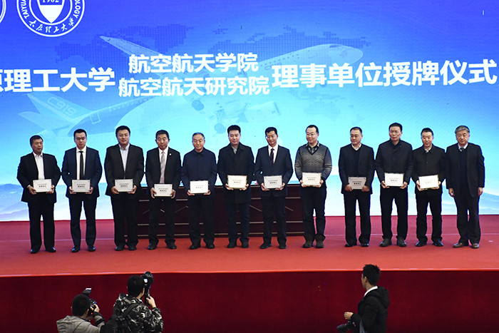 国家有关部委、数十家航空企业单位负责同志;太钢集团、中国航天科技集团公司、北京理工大学、中国商用飞机有限责任公司、国防科技大学、中国航天科技集团公司、哈尔滨工业大学、中国航空发动机集团、中国民用航空局、中国航天科工集团、国家体育总局航空无线电模型运动管理中心、中国飞机强度所首席科学家以及中国商飞、中国航发集团、中国商飞北研中心、中国航天科工第四研究院等相关负责人及单位领导;山西省发改委、教育厅、科技厅、工业和信息化厅、人力资源社会保障厅、山西省体育局、山西省综改示范区等厅局领导,以及山西大学、中北大学、太原科技大学、中科院煤化所、太钢集团、太重集团等30余家高校、科研院所和企业嘉宾代表;在校的校领导出席了仪式。