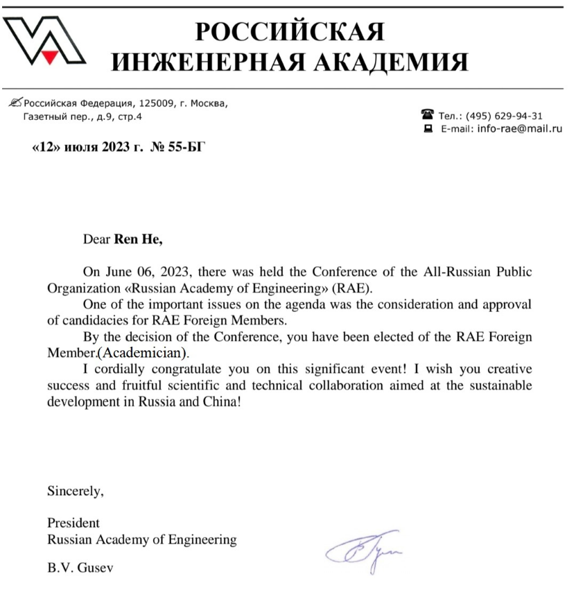任和教授作为公司特聘客座教授,自聘任以来,始终心系公司建设和发展,在学科布局、员工培养、教师发展等多方面给与帮助,多次通过线上线下方式与公司师生开展学术交流。在此热烈祝贺任和教授当选俄罗斯工程院外籍院士!
