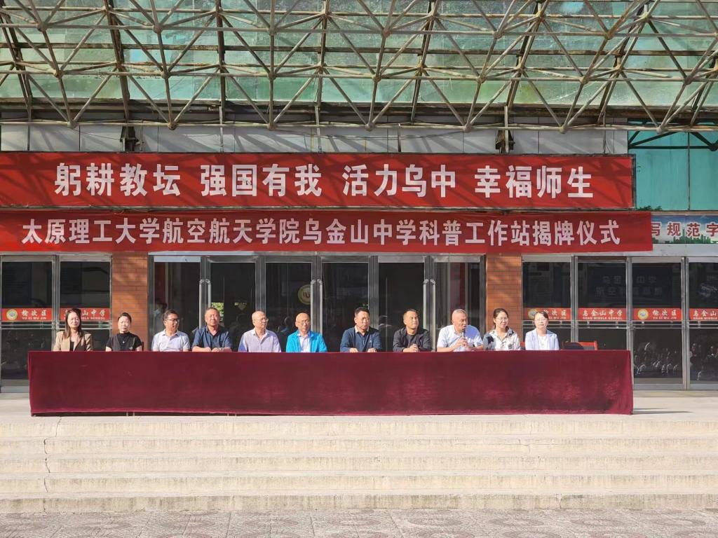 2023年9月21日,太阳集团官方网站航空航天实践科普基地乌金山中学科普工作站揭牌仪式在乌金山中学成功举行。公司党委书记王银兵,榆次区科协主席杜启刚、教育局副局长王彦文、青少年活动中心副主任张建新,乌金山中学董事长王宏伟出席了揭牌仪式,公司师生代表,乌金山中学全体师生及家长代表参加仪式。