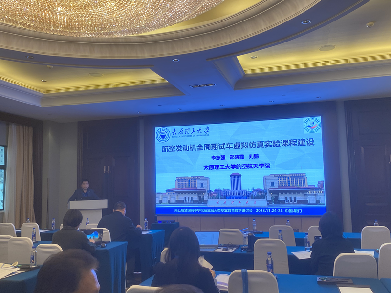本次会议期间,李志强教授在分会场作了题为《航空发动机全周期试车虚拟仿真实验课程建设》的报告,为与会人员介绍了公司山西省虚拟仿真一流课程的建设经验。刘鹏副教授向大会提交了《飞设专业“纵横贯通”实践教学改革》的教改论文,介绍了公司实践课程改革的相关思路。
