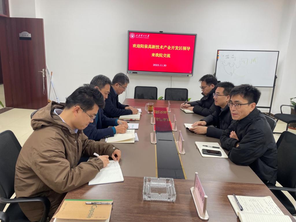 11月30日,阳泉高新区党工委委员、管委会副主任李志华一行4人莅临学院就校地合作、产学研合作等事宜进行交流座谈。公司党委书记王银兵、副经理(主持工作)李文辉、学科助理丁俊飞及教师代表参加了座谈。