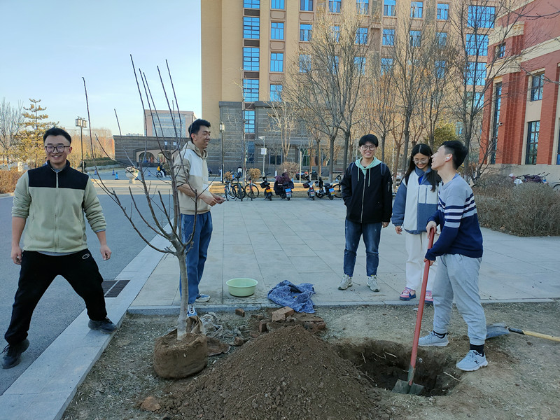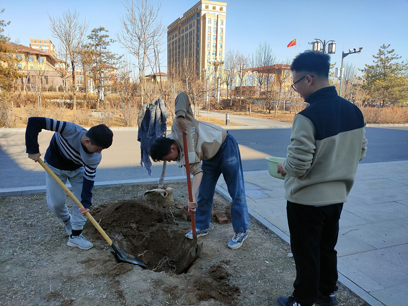 活动前,大家多方联系,精心挑选,满怀真情。认真学习了有关植树的要求和注意事项。这是同学们第一次种树,大家既兴奋,又认真。看似简单的挖坑、种植,对从未受过劳作之苦的老员工们,却显出了一丝的不易。大家轮流上场,你挖一会,他挖几锹,遇到石头石块,还要用手去挖。过程中,有学弟学妹们不时经过,看到如此情景,个个充满好奇与喜悦,总要刻意过来询问几句,共同感受春的惬意和情的真挚。尽管劳动过程辛苦,但同学们依然兴致勃勃。当看到共同栽下的象征友谊、希望和感恩的树苗,挺立在公司门前的那一刻,那份真挚的祝福、由衷的感激也随着它永远生长在了这里。