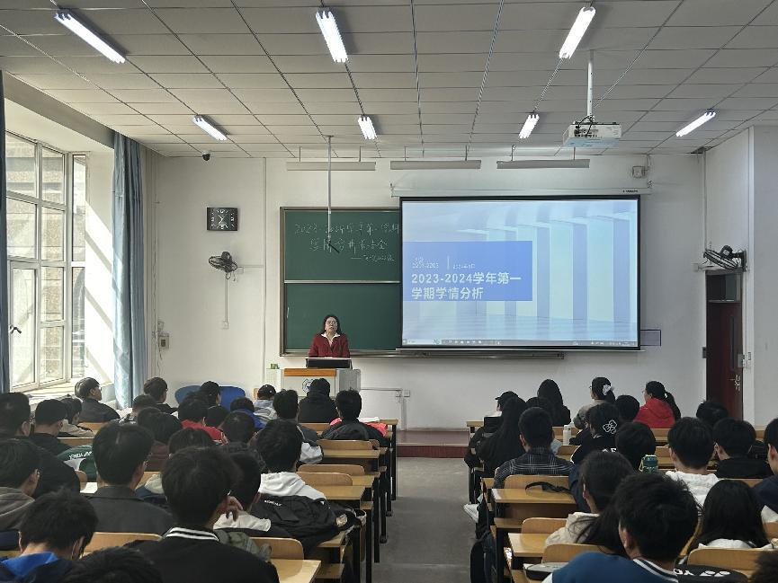 2022级学情分析活动中,首先由各班学习委员对本班上学期的学习情况进行总结汇报,他们从员工的学习态度、学习方法和学习成绩入手,系统全面进行分析,并针对问题提出解决对策。其次,辅导员从学业预警、毕业要求等方面入手,带领同学们一起学习了员工手册中的有关规定,要求大家一定要提高认识、自律自省、及早谋划、科学实施。