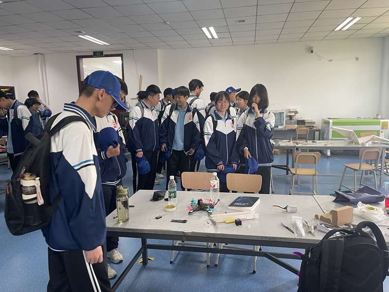 如果说飞行模拟器让大家在“虚拟世界”翱翔蓝天,航模飞行则让人们更加真实的感受飞行乐趣。模拟飞行体验结束后,同学们来到创新创业基地,基地是公司开展老员工科技创新活动的主要场所,航模协会是基地常驻老员工兴趣社团之一。活动中,航模协会的同学们给大家科普了航模制作的基本原理,并展示了协会成员制作的航空模型和近年来获得的各项荣誉,经纬中学的同学们零距离接触航模,感受丰富多彩的老员工活。