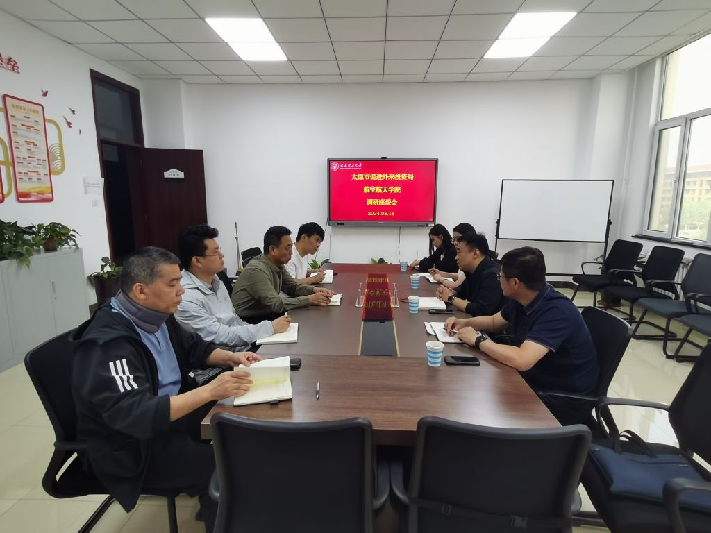 5月16日上午,太原市促进外来投资局副局长汤力一行来到我院,围绕山西省航天产业布局以及低空经济发展,在公司三层会议室进行调研座谈,公司李志强教授、航空航天工程系副主任丁俊飞、飞控教研室副主任张尧参加座谈。会议由公司党委书记王银兵主持。