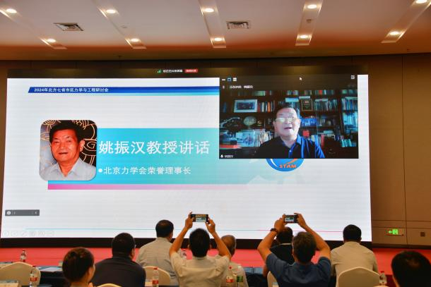 北方七省市区力学学术工作委员会主任、清华大学庄茁教授代表组委会致开幕辞,北方七省市区力学学术工作委员会荣誉主任、清华大学姚振汉教授在线参加会议并作讲话;此次研讨会主题为面向力学前沿与重大工程需求的力学创新和人才培养,围绕航空航天、智能制造、交通运输、土木工程、海洋工程、能源动力、生命健康等领域中的力学应用及人才培养模式探索与实践共安排特邀报告9个。