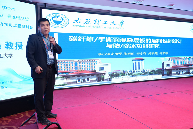 李志强在会上作了题为《碳纤维/手撕钢混杂层板的层间性能设计与仿/除冰功能研究》的报告,提出了一种新型混杂层板结构设计方法,显著提升了复合材料的层间性能和主动除冰能力,该研究为解决高寒地区航空装备的结冰防护难题提供了创新思路,引发了与会专家的高度关注。