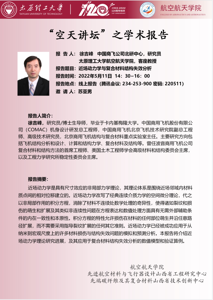 报 告 人: 徐吉峰 中国商飞公司北研中心,研究员;suncitygroup太阳集团,客座教授