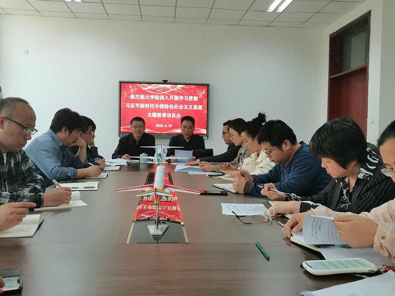2023年4月19日,在航空航天公司四层会议室,召开学习贯彻习近平新时代中国特色社会主义思想主题教育动员会,公司党委书记王银兵作动员讲话,副经理(主持工作)李文辉主持会议,支部书记、教师党员及全体教职工参加会议。