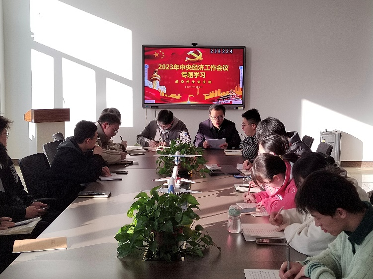 2024年1月5日上午,航空员工党支部组织全体党员,集中学习习近平总书记在中共中央纪念毛泽东同志诞辰130周年座谈会上的重要讲话精神和中央经济工作会议精神。学习由公司党委副书记、支部书记李伟主持并领学。