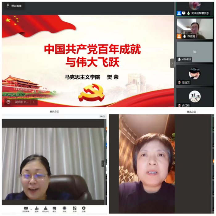 课后,郝雪玲对樊荣老师的精彩授课表示感谢,她认为樊老师的授课思路清晰条理,授课内容详实、系统,使广大师生对中国共产党的百年奋斗史有了更深刻的认识。郝雪玲勉励全院青年教师以樊荣老师为榜样,刻苦钻研,积极拼搏,做到教学、科研全面发展。同时,强调党员同志要不断提高党员党性意识,保证自主学习不放松、不懈怠;要强化责任,切实做好本职工作,时刻关注疫情防控形势,校内、居家老师协调配合,将各项工作做到精益求精。