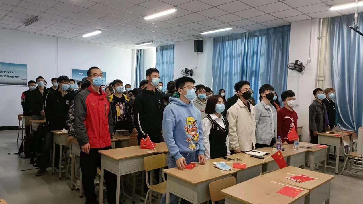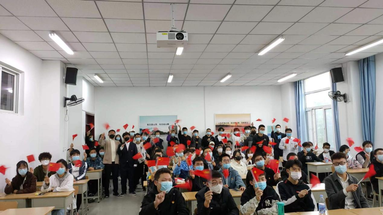 习近平总书记代表第十九届中央委员会向大会做了“高举中国特色社会主义伟大旗帜,全面贯彻习近平新时代中国特色社会主义思想,弘扬伟大建党精神,自信自强、守正创新,踔厉奋发、勇毅前行,为全面建设社会主义现代化国家、全面推进中华民族伟大复兴而团结奋斗”的报告。整个过程中,同学们手持国旗,佩戴党员党徽、团徽,认真聆听,并不时报以热烈的掌声。