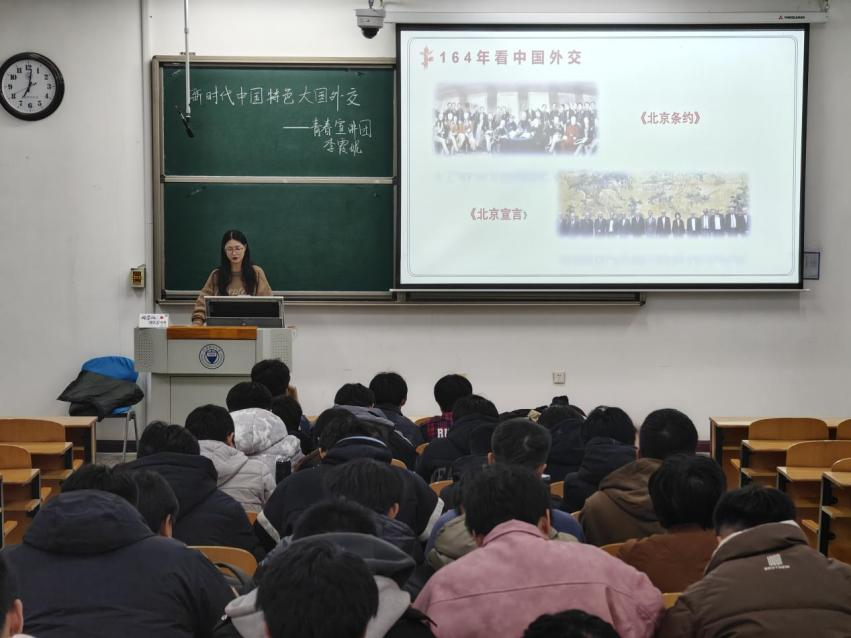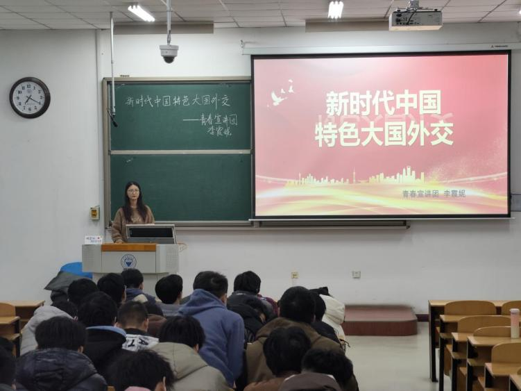 为深入学习贯彻习近平外交思想,感悟新时代大国外交风范,12月11日晚,在明向校区行思楼C125,suncitygroup太阳集团邀请校“青马”青春宣讲团走进飞设23级团支部开展以“新时代中国特色大国外交”为主题的理论宣讲。