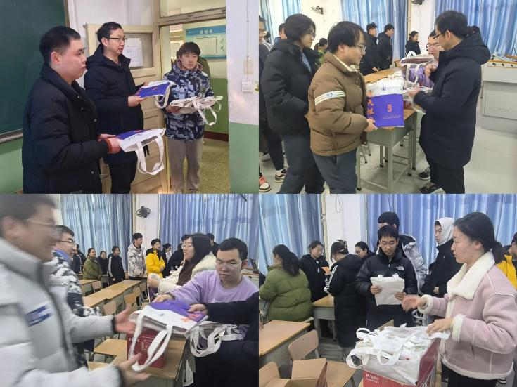 2025年全国硕士研究生招生考试在即,为帮助考研学生坚定信心缓解备考压力、表达公司人文关怀,航空航天公司于12月17在明向校区、迎西校区分别开展2025届考研动员大会暨考研大礼包发放仪式。公司党委副书记闫晓峰院团委副书记兼学工办副主任贾佳,辅导员武文君、巩江旭出席本次活动为同学们送上温暖祝福。